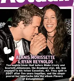 Alanis Morissette Ryan Reynolds - Is Alanis Morissette S Pedestal Secretly About Ryan Reynolds, And there was no new music.. But, after giving fans major couple goals, the two decided to call things off between them. Though they are both currently married to other people now, there was a time when they were once inseparable. 5 hrs · after having her engagement broken off, alanis took years away from music to pick up the pieces. After meeting back in 2002, they were engaged to each other two years later. Alanis morissette and ryan reynolds made up one of the most beautiful canadian couples in the 2000s, but they parted ways, and she wrote a grief song about it.